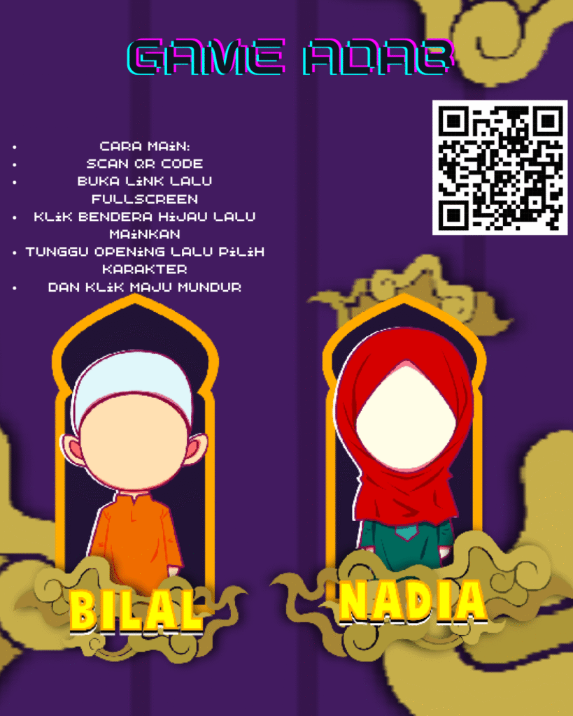 This game shows you the adab Before sleep you can choose one of character BILAL Or NADIA